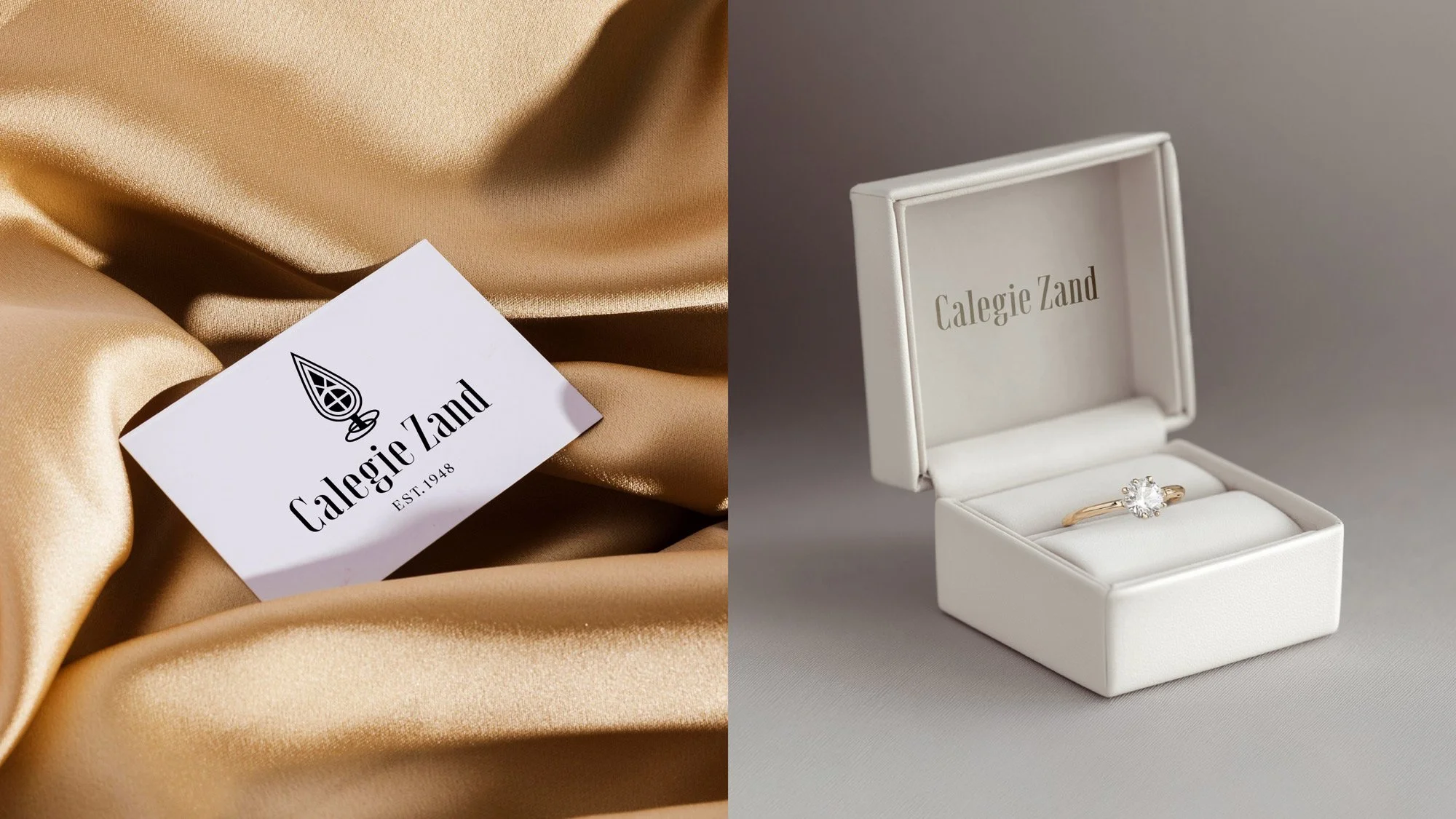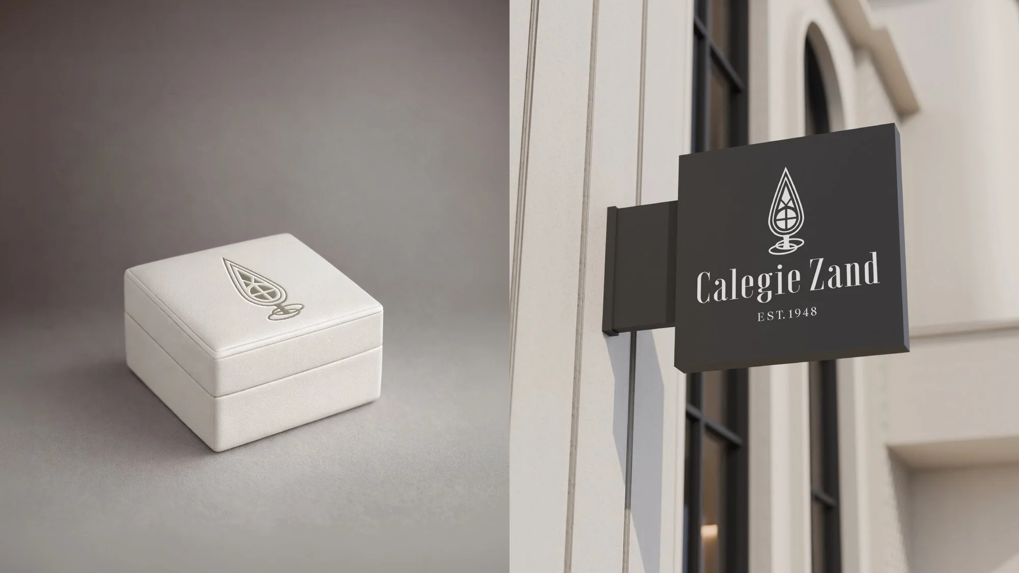 To connect the symbol to love, I introduced rings into the brand mark. The trunk is framed by the rings, symbolically “locking” love in place. The wordmark is kept classic and sophisticated, using a distinctive typeface. Together, the brand mark and wordmark form a logotype that captures the essence of Calegie Zand and creates a timeless, sophisticated, and unique expression.