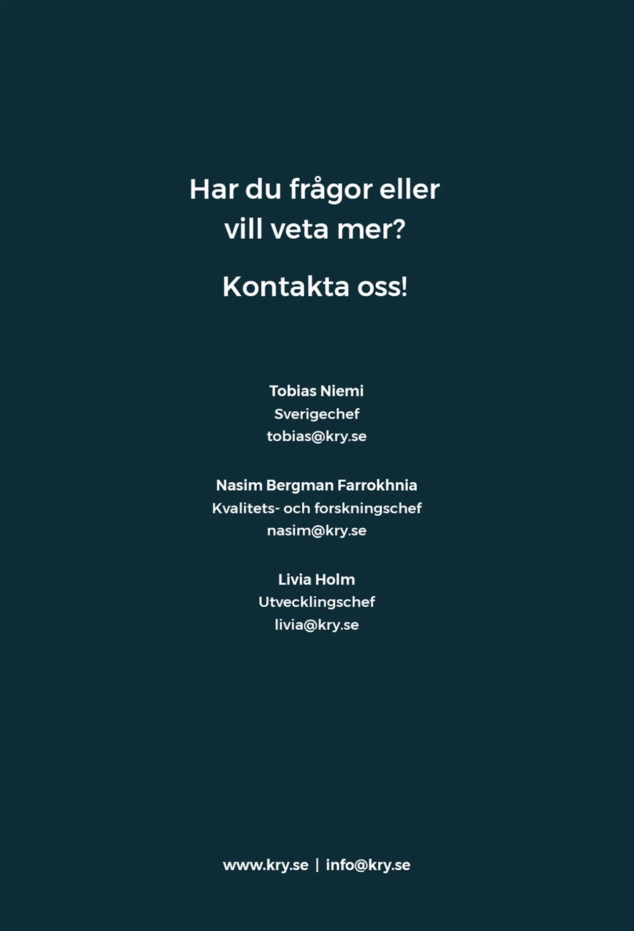 Design for Kry Quality Report, January–September 2019, Sweden. Printed as a folder and sent out as a pdf.